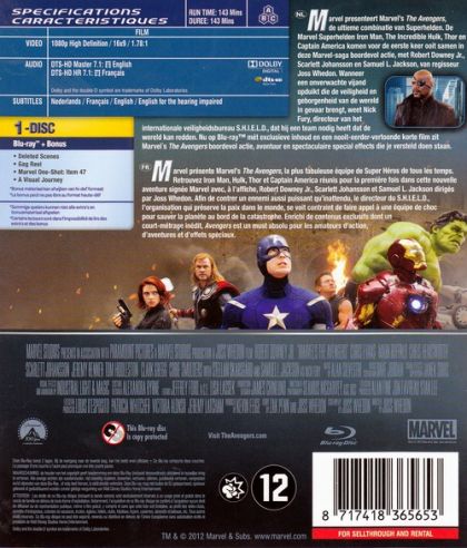 Marvel presenteert Marvels The Avengers, de ultieme combinatie van Superhelden. De Marvel Superhelden Iron Man, The Incredible Hulk, Thor en Captain America komen voor de eerste keer ooit samen in deze Marvel-saga boordevol actie, met Robert Downey Jr., Scarlett Johansson en Samuel L. Jackson, van regisseur Joss Whedon. Wanneer een onverwachte vijand opduikt die de veiligheid en geborgenheid van de wereld in gevaar brengt, weet Nick Fury, directeur van het internationale veiligheidsbureau S.H.I.E.L.D., dat hij een team nodig heeft dat de wereld kan redden. Nu op Blu-ray™ mét exclusieve inhoud en nooit-eerder-vertoonde korte film zit Marvel's The Avengers boordevol actie, avontuur en spectaculaire special effects die je versteld doen staan.