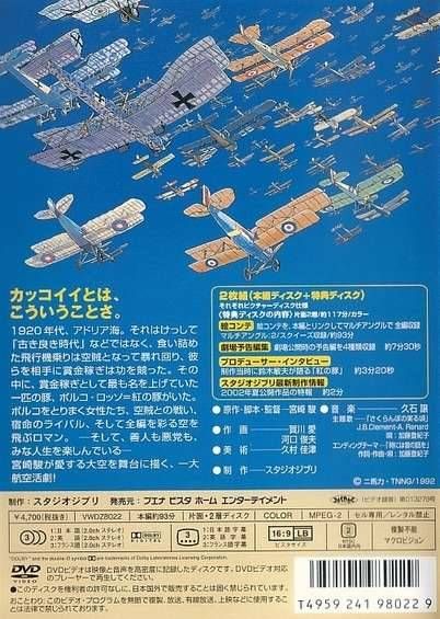 Based on his own Manga short, Hayao Miyazaki's directorial follow-up to his big hit "Kiki's Delivery Service" is a fantastic tale of a different kind. Many speculate that the main character reflects his own self more than any other characters he created. The big hit film measured up to the fans' expectations and then some. Set in Italy in the late 1920's where the fascism began to make its power felt, the movie follows a pilot known as Porco Rosso who had been turned into a "pig" by a curse during an air battle. He now makes a living doing odd jobs which often involve hilarious high flying adventures, one of which leads him to a certain surprising realization. Even though its star is not a young heroine as in most of Miyazaki's films, this action-packed film has more than its share of his signature visuals and ideas.