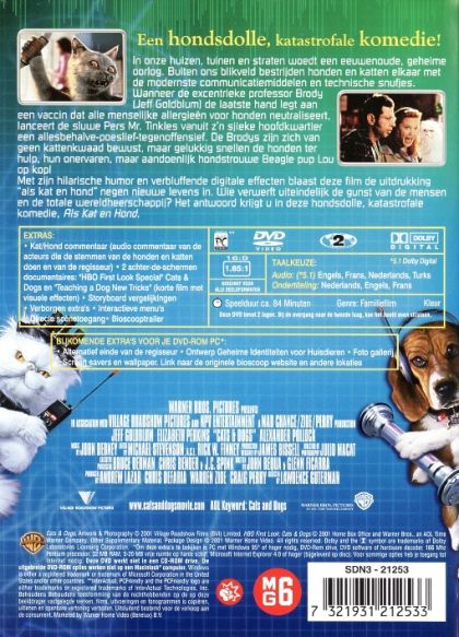 In onze huizen, tuinen en straten woedt een eeuwenoude, geheime oorlog. Buiten ons blikveld bestrijden honden en katten elkaar met de modernste communicatiemiddelen en technische snufjes. Wanneer de excentrieke professor Brody (Jeff Goldblum) de laatste hand legt aan een vaccin dat alle menselijke allergieën voor honden neutraliseert, lanceert de sluwe Pers Mr. Tinkles vanuit z'n sjieke hoofdkwartier een allesbehalve-poeslief-tegenoffensief. De Brody's zijn zich van geen kattekwaad bewust, maar gelukkig snellen de honden ter hulp, hun onervaren, maar aandoenlijk hondstrouwe Beagle pup Lou op kop!Met zijn hilarische humor en verbluffende digitale effecten blaast deze film de uitdrukking "als kat en hond" negen nieuwe levens in. Wie verwerft uiteindelijk de gunst van de mensen en de totale wereldheerschappij? Het antwoord krijgt u in deze hondsdolle, katastrofale komedie, 'Als Kat en Hond'.