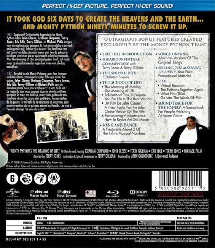 Opgepast! De inmiddels legendarische Monty Python-leden John Cleese, Graham Chapman, Terry Jones, Eric Idle, Terry Gilliam en Michael Palin zorgen voor een explosie aan grappen. In hun onnavolgbare en vaak ondeugende stijl, lichten zij u in over 'De Betekenis van het Leven' en laten zij onder meer zien hoe de geboorte in elkaar steekt en wat er op u wacht in het hiernamaals. Wie 'The Meaning of Life' eenmaal gezien heeft, zal nooit meer op dezelfde manier tegen het leven van alledag aankijken.