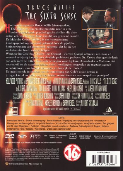 A psychological thriller about an eight year old boy named Cole Sear who believes he can see into the world of the dead. A child psychologist named Malcolm Crowe comes to Cole to help him deal with his problem, learning that he really can see ghosts of dead people.