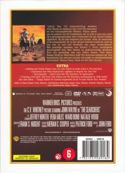 Tijdens hun 12e samenwerking maakten John Wayne en regisseur John Ford The Searchers tot een toonaangevende Western. Wayne speelt een ex-soldaat van de Confederatie die op zoek is naar zijn nicht. Zij is gevangengenomen door Comanches die zijn familie hebben afgeslacht. Hij zal niet toegeven aan honger, dorst, de elementen of de eenzaamheid. En in zijn vijf jaar durende zoektocht vindt hij iets wat hij niet had verwacht: zijn eigen menselijkheid. Met prachtige opnamen van Winton C. Hoch, aangrijpend gearrangeerd door Max Steiner en gedenkwaardig geacteerd door een geweldige cast met Jeffrey Hunter, Vera Miles, Natalie Wood en Ward Bond, blijft The Searchers bestaan als "een fantastische film met een enorme reikwijdte en adembenemende schoonheid" (Danny Peary, Guide for the Film Fanatic).
