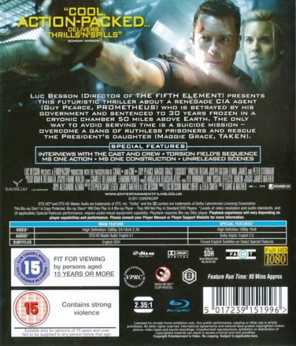 Luc Besson (Director of THE FIFTH ELEMENT) presents this futuristic thriller about a renegade CIA agent (Guy Pearce, PROMETHEUS) who is betrayed by his government and sentenced to 30 years frozen in a cryogenic chamber 50 miles above Earth. The only way to avoid serving time is a suicide mission – overcome a gang of ruthless prisoners and rescue the President's daughter (Maggie Grace, TAKEN).