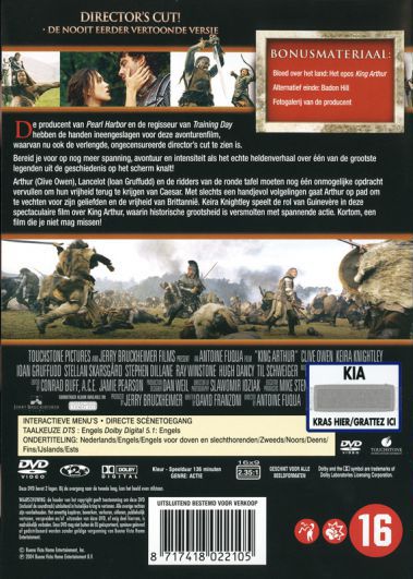De producent van Pearl Harbor en de regisseur van Training Day hebben de handen ineengeslagen voor deze avonturenfilm, waarvan nu ook de verlengde, ongecensureerde director's cut te zien is.Bereid je voor op nog meer spanning, avontuur en intensiteit als het echte heldenverhaal over één van de grootste legenden uit de geschiedenis op het scherm knalt!Arthur (Clive Owen), Lancelot (Ioan Gruffudd) en de ridders van de ronde tafel moeten nog één onmogelijke opdracht vervullen om hun vrijheid terug te krijgen van Caesar. Met slechts een handjevol volgelingen gaat Arthur op pad om te vechten voor zijn geliefden en de vrijheid van Brittannië. Keira Knightley speelt de rol van Guinevère in deze spectaculaire film over King Arthur, waarin historische grootsheid is versmolten met spannende actie. Kortom, een film die je niet mag missen!