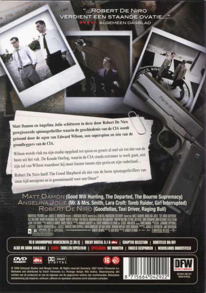 Matt Damon en Angelina Jolie schitteren in deze door Robert De Niro geregisseerde spionagethriller waarin de geschiedenis van de CIA wordt getoond door de ogen van Edward Wilson, een superspion en één van de grondleggers van de CIA. Wilson wordt vlak na zijn studie opgeleid tot spion en groeit al snel uit tot één van de beste uit het vak. De Koude Oorlog, waarin de CIA steeds extremer te werk gaat, eist zijn tol van Wilson waardoor hij moet kiezen tussen zijn gezin en zijn vaderland.... Robert De Niro heeft The Good Shepherd als één van de beste spionagethrillers van onze tijd neergezet en is genomineerd voor een Oscar®