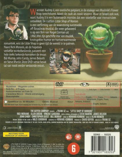 Wanneer Audrey II, een exotische potplant, in de etalage van Mushnik's Flower Shop terechtkomt, bloeit de zaak als nooit tevoren. Maar er broeit ook wat, want Audrey II is een buitenaards monster, dat een voorliefde voor mensenvlees ontwikkelt. De cultfilm Little Shop of Horrors is een verfilming van de waanzinnig succesvolle off-Broadway musical, die weer gebaseerd is op een film van Roger Corman uit 1960. Met zijn geschifte mix van muziek, knotsgekke humor en hartverwarmende romantiek, wist de Little Shop in geen tijd de wereld in te palmen. Naast Rick Moranis, als de hopeloos verliefde winkelbediende, passeert een hele reeks bekende komieken de revue: Bill Murray, John Candy, James Belushi en Steve Martin. Deze DVD-versie bevat tal van nooit eerder vertoonde extra's.