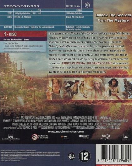 In de geest van de Pirates of the Caribbean-trilogie nemen Walt Disney Pictures en Jerry Bruckheimer Films je mee naar het mystieke Perzië voor een woest vermakelijk en episch actie-avontuur. Een prins (Jake Gyllenhaal) en een rivaliserende prinses (Gemma Arterton) moeten met tegenzin de handen ineen slaan om een magische dolk veilig te stellen, maar de tijd dringt. De dolk geeft degene die hem in handen heeft de kracht om de tijd terug te draaien en over de wereld te heersen. PRINCE OF PERSIA: THE SANDS OF TIME zit boordevol spannende ontsnappingen en onverwachtse wendingen, en is een leuk avontuur dat je nog lang in zijn greep zal houden.