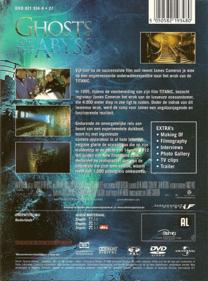 Vijf jaar na de succesvolste film ooit neemt James Cameron je mee op een ongeëvenaarde onderwaterexpeditie naar het wrak van de TITANIC.In 1995, tijdens de voorbereidingen van zijn film TITANIC, bezocht regisseur James Cameron het wrak van de luxueuze oceaanstomer, die 4.000 meter diep in zee ligt te rusten. Onder de indruk van dit immense wrak, werd de ramp voor James een angstaanjagende en fascinerende realiteit.Gedurende de onvergetelijke reis aan boord van een experimentele duikboot, toont hij met ingenieuze camera-apparatuur in al haar letterlijk vergane glorie de oceaanreus die op zijn maidentrip in de nacht van 14 april 1912 ten zuiden van New Foundland zonk. Herbelef nu realistischerdan ooit de catastrofe die zich toen voltrok, waarin meer dan 1.500 passagiers omkwamen.