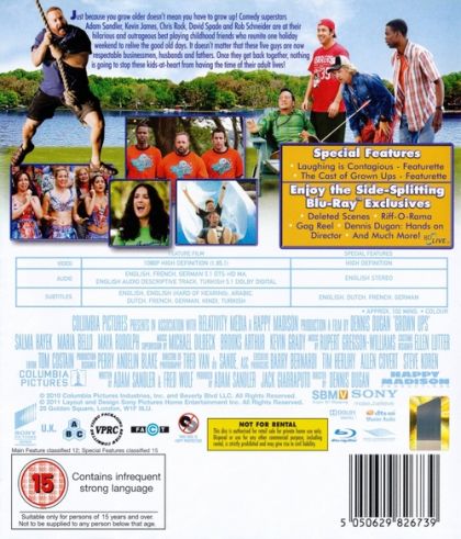 Just because you grow older doesn't mean you have to grow up! Comedy superstars Adam Sandler, Kevin James, Chris Rock, David Spade and Rob Schneider are at their hilarious and outrageous best playing childhood friends who reunite one holiday weekend to relive the good old days. It doesn't matter that these five guys are now respectable businessmen, husbands and fathers. Once they get back together, nothing is going to stop these kids-at-heart from having the time of their adult lives!