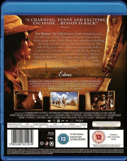 Luc Besson (The Fifth Element, Leon) transports us to the wild days of early Twentieth Century Paris, where feisty young writer Adèle Blanc-Sec embarks on thrilling missions to find exciting material for her book. She sails to Egypt to raid a tomb that supposedly hides a cure for her sick sister, but what will she do when an army of resurrected mummies get in the way? Back in Paris she finds the city in chaos after a 136 million-year old pterodactyl egg mysteriously hatches. Adèle realises she is the only one game enough to take control of the prehistoric bird.