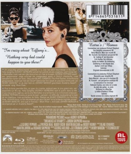 Dit zorgvuldig gerestaureerde juweeltje is nu voor het eerst beschikbaar in Blu-ray™. Holly Golightly (AUDREY HEPBURN) verrukt het publiek als een zorgeloos, naïef meisje dat in Manhattan zoekt naar een rijke droomman om mee te trouwen. GEORGE PEPPARD speelt een 'gesponsorde' jonge schrijver die meegesleept wordt in Holly's chaotische, maar betoverende manier van leven. Deze door BLAKE EDWARDS (The Pink Panther, Victor/Victoria) geregisseerde, tweemaal met een Oscar® bekroonde film bevat de filmmuziek van HENRI MANCINI* en de door hem en JOHNNY MERCER geschreven Academy Award®-winnende† song 'Moon River'. *Winnaar: Beste muziek - Muziek van een drama of komedie, 1961.†Winnaar: Beste muziek (Song), 1961.