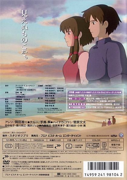 Studio Ghibli's latest full-length animated feature comes to DVD, directed by Hayao Miyazaki's son Goro Miyazaki! The world is gripped in terror as plants are drying up, livestock are going to waste, and the human brain begins to corrupt. Natural disasters are punishing the kingdom of Enlad and the light which should be bringing balance to the world is weakening. Meanwhile the sacred sword has been stolen from the king by an assassin. On the verge of passing out, the king mutters the name "Arren" . . . the name of his only son who is on a journey to find the source of the destruction in the world. When Arren comes across the powerfull sorcerer Haitaka, a man formerly known as Ged who is the root of the terror, the balance of the world begins to crumble and Arren's life itself is on the edge. However, when Haitaka witnesses Arren's inability to overcome the darkenss in his own heart, Haitaka sees elements of himself in the young prince. He spares his life and the two venture out into the world.