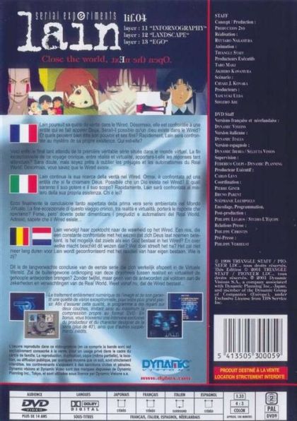 Lain vervolgt haar zoektocht naar de waarheid op het Wired. Een reis, die een constante confrontatie met het wezen dat zich Deus laat noemen betekent. Is het mogelijk dat zoiets als een God bestaat in het Wired? En over welke macht beschikt dit wezen dan? Welk doel streeft het na? Het zal niet meer lang duren voor Lain wordt geconfronteerd met het raadsel van haar eigen bestaan. Wie is zij?Dit is de langverwachte conclusie van de eerste serie die zich werkelijk afspeelt in de Virtuele Wereld. Zal de buitengewone ontknoping van deze droomreis tussen realiteit en virtualiteit de gehoopte antwoorden brengen? Zonder twijfel, maar geen van de antwoorden zal voldoen aan de zekerheden en verwachtingen van de Real World. Weet vanaf nu, dat deze Wired bestaat...