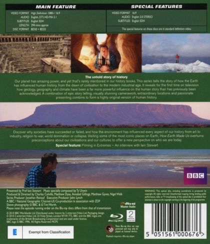 The untold story of historyOur planet has amazing power, and yet that's rarely mentioned in our history books. This series tells the story of how the Earth has influenced human history, from the dawn of civilisation to the modern industrial age. It reveals for the first time on television how geology, geography, and climate have been a far more powerful influence on the human story than has previously been acknowledged. A combination of epic story telling, visually stunning camerawork, extraordinary locations and passionate presenting combine to form a highly original version of human history.Discover why societies have succeeded or failed, and how the environment has influenced every aspect of our history from art to industry, religion to war, world domination or collapse. Visiting some of the most iconic places on Earth, How Earth Made Us overturns preconceptions about our civilisations and our cultures to offer a new perspective on who we are today.