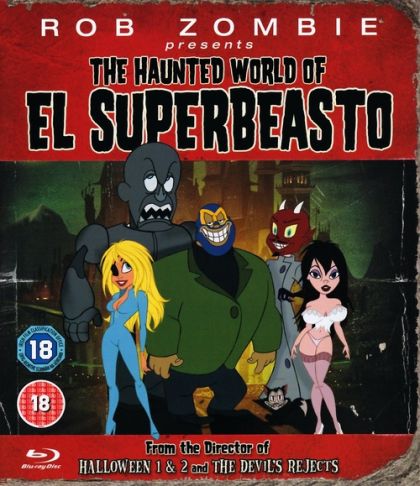 El Superbeasto aka "Beasto" is an unstoppable superhero masked wrestler, Producer/Director/Star of BeastoWorld Enterprises - and world-famous man of action! In his first full-length animated adventure based on the comic book created by Rob Zombie, Beasto and his super-sexy sister Suzi X must stop the unholy marriage of foul-mouthed stripper Velvet Von Black and diabolical Dr. Satan, or unleash all the sudsy powers of Hell! Welcome to a depraved domain of outrageous comedy, non-stop ultra-violence and bad-ass theme songs! Featuring a horde of Nazi zombie bikers, seven original songs by Hard 'n Phirm and the voice talents of Tom Papa, Sheri Moon Zombie, Rosario Dawson, Brian Posehn and Paul Giamatti as Dr. Satan in The Haunted World Of El Superbeasto!