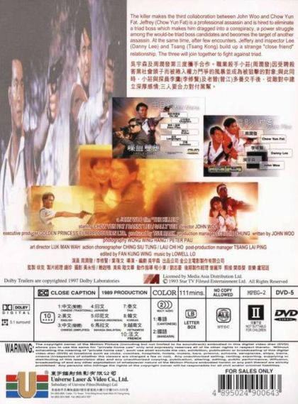 The Killer makes the third collaboration between John Woo and Chow Yun Fat. Jeffrey (Chow Yun Fat) is a professional assassin and is hired to eliminate a triad boss which makes him dragged into a conspiracy, a power struggle among the would-be triad boss candidates and becomes the target of another assassin. At the same time, after few encounters. Jeffery and inspector Lee(Danny Lee) and Tsang (Tsang Kong) build up a strange "close friend" relationship. The three will join together to fight against triad.