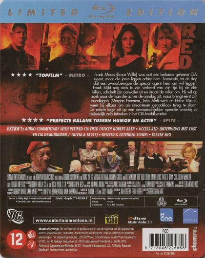Verrassing: "RED VX".* Plaats de disc in de speler;* Ga in het BD disc Menu staan op het "Special Features" item;* Druk nu op de "naar beneden" pijltjes toets ;Nu ligt op het item een "afbeelding" met Bruce Willis op;* Druk op "enter".Nu krijg je een Featurette van (10.46 min.) in 2.40:1 1080p24ps MPEG-2 met DD2.0 geluid, zonder NL ot te zien met vergelijkingen van scènes voor en na bewerking met GCI en/of VXF plus het aanpassen of verwijderen van achtergronden. Bij deze scènes zie je dus eerst het beeld van de niet bewerkt opnamen en dan de uiteindelijke bewerkte opname die in de film te zien is.