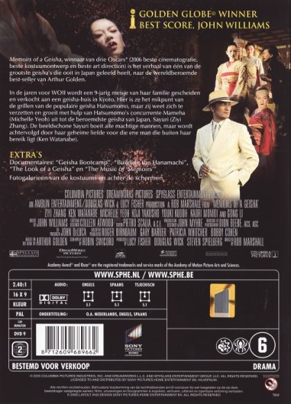 Memoirs of a Geisha , winnaar van drie Oscars® (beste cinematografie, beste kostuumontwerp en beste art direction) is het verhaal van één van de grootste geisha's die ooit in Japan geleefd heeft, naar de wereldberoemde bestseller van Arthur Golden.In de jaren voor WOII wordt een 9-jarig meisje van haar familie gescheiden en verkocht aan een geishahuis in Kyoto. Hier is ze het mikpunt van de grillen van de populaire geisha Hatsumomo, maar zij weet zich te verzetten en groeit met hulp van Hatsumomo's concurrente Mameha (Michelle Yeoh) uit tot de beroemdste geisha van Japan, Sayuri (Ziyi Zhang). De beeldschone Sayuri boeit alle machtige mannen, maar wordt achtervolgd door haar geheime liefde voor die ene man die buiten haar bereik ligt (Ken Watanabe).