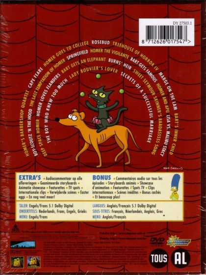 Deze Vijfde Grote Special Edition Box Set van The Simpsons op Digital Versatile Disc (oftewel "DVD") is misschien wel de beste tot nu toe. We hebben hem volgepropt met alle mogelijke tijdverspillende extra's die fans zo graag willen, zoals interactieve en meervoudige invalshoeken op onze onbewerkte animaties en storyboards, volledige maar nooit vertoonde en om goede redenen voor altijd verwijderde scènes; verklarende commentaren van de regisseurs waarin zij allerlei 'sneaky' details uit de doeken doen; en een aantal werkelijk schaamteloze TV-spots. Ook zetten wij met trots onze Simpsonstraditie voort, door elke afleveringen te voorzien van overvloedig gesproken commentaar, inclusief korte momenten waar wij ook daadwerkelijk ingaan op wat er precies op het scherm gebeurt.Seizoen 5 (1993-94) bevat veel van onze pittigste dan wel zeer veel opschudding veroorzakende scènes. Je krijgt te zien hoe 'Grampa' en Mr. Burns de moeder van Marge het hof maken, Homer die chips eet in de ruimte, Lisa die de 'Lisa Lionheart' pop uitvindt, Bart die een olifant krijgt, Marge die op de vlucht slaat en Maggie die begint met haar levenslange vete met 'De Baby Met Eén Wenkbrauw'.Je zult ook 'Sideshow Bob' te zien krijgen die uitlegt dat zijn "Die, Bart, Die" tatoeage (die in het Engels zoveel wil zeggen als "Sterf, Bart, Sterf"), eigenlijk Duits is voor "De, Bart, De." En de Ramones die op het verjaardagsfeestje van Mr. Burns spelen. En een excursie naar een kartonfabriek. En Homer die vrolijk aan een varkensstaart trekt, totdat het varken hem kwaadaardig bijt. En de historische eerste verschijning van Cletus, de 'Slack-Jawed Yokel'.En natuurlijk hebben we het hele seizoen doorspekt met een gezonde hoeveelheid Bumblebee Man, Apu, Milhouse, Dr. Hibbert, Mrs. Krabappel, Principal Skinner, Kent Brockman, Rod en Todd Flanders, Itchy & Scratchy, Comic Book Guy, Moe en Ralph Wiggum. Tot onze gasten mogen wij rekenen James Brown, George Harrison, Albert Brooks, David Crosby, Kathleen Turner, Kelsey Grammer, Werner Klemperer, Pamela Reed, Gerry Cooney, Sam Neill, Ernest Borgnine, Robert Goulet, James Taylor, James Woods, Michelle Pfeiffer, Buzz Aldrin, en de voormalig Simpsons schrijver/producer Conan O'Brien.Dus ga maar lekker achteroverzitten en geniet van dit schitterende seizoen vol klassieke Simpsons afleveringen. Namens de hardwerkende schrijvers, tekenaars, musici, producers en acteurs, danken wij iedereen voor de enthousiaste brieven, tekeningen en cadeaus, en herinneren u aan ons standaard beleid: 'No Refunds', oftewel: 'eens gegeven blijft, gegeven'.Uw vriend,Matt GroeningHet complete vijfde seizoen bevat de volgende 22 afleveringen:DISC 1Homer's Barbershop Quartet Cape FeareHomer Goes to College RosebudTreehouse Of Horror IVDISC 2Marge on the LamBart's Inner ChildBoy-Scoutz 'N the HoodThe Last Temptation of Homer $pringfield (Or How I Learned to Stop Worrying and Love Legalized Gambling)Homer the VigilanteDISC 3Bart Gets FamousHomer and ApuLisa vs. Malibu StacyDeep Space HomerHomer Loves FlandersBart Gets An ElephantDISC 4Burns' HeirSweet Seymour Skinner's Baadasssss SongThe Boy Who Knew Too MuchLady Bouvier's LoverSecrets of a Successful Marriage
