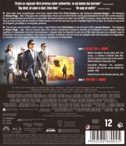 Geen plan. Geen versterkingen. Geen keus. Agent Ethan Hunt (Tom Cruise) en zijn eliteteam (Jeremy Renner – The Avengers en Simon Pegg – Star Trek) gaan een ondergrondse missie aan als het Kremlin wordt gebombardeerd en het IMF wordt neergezet als een internationale terroristische organisatie. Het team probeert de naam van het IMF te zuiveren, maar stuit dan op een complot voor een kernoorlog. Om de wereld te redden moeten ze een beroep doen op alle mogelijke high-tech snufjes. De missie is nog nooit zo dringend, gevaarlijk en onmogelijk geweest.