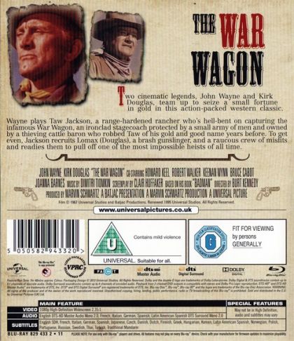 Two cinematic legends, John Wayne and Kirk Douglas, team up to seize a small fortune in gold in this action-packed western classic.Wayne plays Taw Jackson, a range-hardened rancher who's hell-bent on capturing the infamous War Wagon, an ironclad stagecoach protected by a small army of men and owned by a thieving cattle baron who robbed Taw of his gold and good name years before. To get even, Jackson recruits Lomax (Douglas), a brash gunslinger, and a raucous crew of misfits and readies them to pull off one of the most impossible heists of all time.