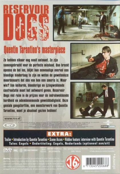 Ze hebben elkaar nog nooit ontmoet. Ze zijn samengebracht voor de perfecte misdaad. Dan breekt opeens de hel los, blijkt hun eenvoudige overval een bloedige hinderlaag te zijn en weten de gewetenloze moordenaars dat één van hen een smeris is. Maar wie? Een keiharde, bloederige en ijzingwekkende confrontatie moet het antwoord geven. Een keiharde, bloederige en ijzingwekkende confrontatie moet het antwoord geven. Reservoir Dogs viel ruim in de prijzen voor de indrukwekkende hardheid en adembenemende geweldadigheid. Deze geniale gangsterfilm, een meesterwerk van Quentin Tarantino, moet je absoluut gezien hebben!