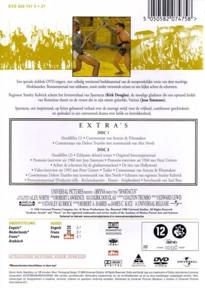 Een speciale dubbele DVD-uitgave, met volledig vernieuwd beeldmateriaal van de oorspronkelijke versie van deze machtige filmklassieker. Bonusmateriaal met zeldzame, nooit eerder vertoonde scènes en een kijkje achter de schermen.Regisseur Stanley Kubrick schetst het levensverhaal van Spartacus (Kirk Douglas), de moedige gladiator die een opstand leidde van Romeinse slaven en de vrouw die in zijn missie geloofde, Varinia (Jean Simmons).Spartacus, een inspirerend, op feiten gebaseerd verhaal over de eeuwige strijd voor de vrijheid, combineert geschiedenis en spektakel in een ontroerend drama over liefde en betrokkenheid.