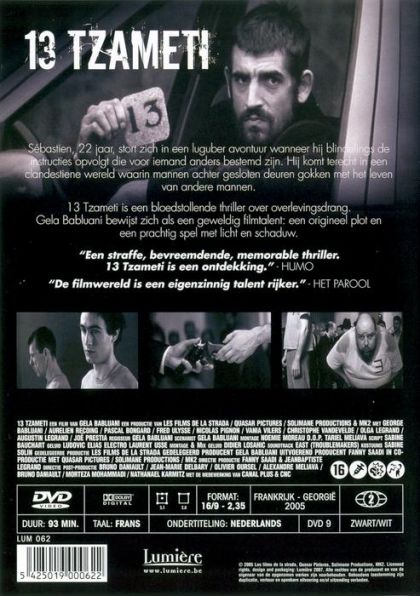 Sébastien, 22 jaar, stort zich in een luguber avontuur wanneer hij blindelings de instructies opvolgt die voor iemand anders bedoeld zijn. Hij komt terecht in een clandestiene wereld waarin mannen achter gesloten deuren gokken met het leven van andere mannen.13 Tzameti is een bloedstollende thriller over overlevingsdrang. Géla Babluani bewijst zich als een geweldig filmtalent: een origineel plot en een prachtig spel met licht en schaduw.