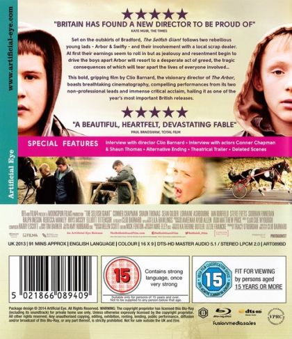 Set on the outskirts of Bradford, The Selfish Giant follows two rebellious young lads - Arbor & Swifty - and their involvement with a local scrap dealer. At first their earnings seem to roll in but as jealousy and resentment begin to drive the boys apart Arbor will resort to a desperate act of greed, the tragic consequences of which will tear apart the lives of everyone involved...This bold, gripping film by Clio Barnard, the visionary director of The Arbor, boasts breathtaking cinematography, compelling performances from its two non-professional leads and immense critical acclaim, hailing it as one of the year's most important British releases.