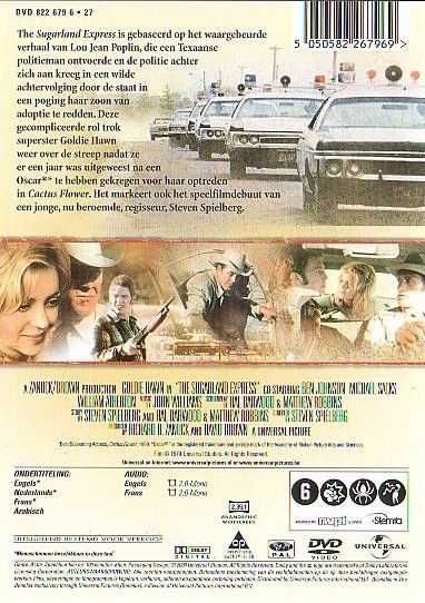 The Sugarland Express is gebaseerd op het waargebeurde verhaal van Lou Jean Poplin, die een Texaanse politieman ontvoerde en de politie achter zich aan kreeg in een wilde achtervolging door de staat in een poging haar zoon van adoptie te redden. Deze gecompliceerde rol trok superster Goldie Hawn weer over de streep nadat ze er een jaar uitgeweest was na een Oscar®* te hebben gekregen voor haar optreden in Cactus Flower. Het markeert ook het speelfilmdebuut van een jonge, nu beroemde, regisseur, Steven Spielberg.*Best Supporting Actress, Cactus Flower, 1969.