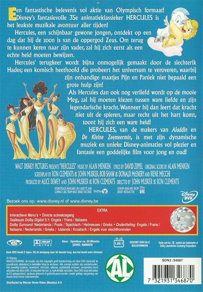 Een fantastische belevenis vol aktie van Olympisch formaat! Disney's fantasievolle 35e animatieklassieker HERCULES is het leukste muzikale avontuur aller tijden!Hercules, een schijnbaar gewone jongen, ontdekt op een dag dat hij de zoon is van de oppergod Zeus. Om terug te kunnen keren naar zijn vader, zal hij zich eerst als een echte held moeten bewijzen. Hercules' terugkeer wordt bijna onmogelijk gemaakt door de slechterik Hades; een komisch heethoofd die probeert het universum te veroveren, waarbij zijn onhandige maatjes Pijn en Paniek niet bepaald een grote hulp zijn!Als Hercules dan ook nog verliefd wordt op de mooie Meg, zal hij moeten kiezen tussen ware liefde en zijn legendarische kracht. Wanneer hij dan leert dat kracht niet uit de spieren, maar recht uit het hart komt, toont hij zich een ware held!HERCULES, van de makers van Aladdin en De Kleine Zeemeermin, is met zijn dynamische muziek en unieke Disney-animaties vol plezier en fantasie een goddelijke film voor jong en oud!