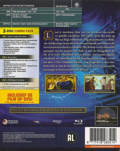 Laat je meeslepen door een van de meest succesvolle en geliefde tekenfilms aller tijden. Voor het eerst op Blu-ray High Definition! Volg de avonturen van Belle, een vrolijke jonge vrouw die in het kasteel belandt van een prins die in een mysterieus beest is veranderd. Met de hulp van het betoverde personeel van het kasteel leert Belle al snel de belangrijkste les die er is: ware schoonheid zit van binnen. Een nieuwe digitale restauratie en opwindend nieuw bonusmateriaal zorgen ervoor dat deze 3-Disc Diamond Edition nog magischer is dan ooit. Kom erbij en laat de onvergetelijke muziek en hartverwarmende personages je betoveren als nooit tevoren.