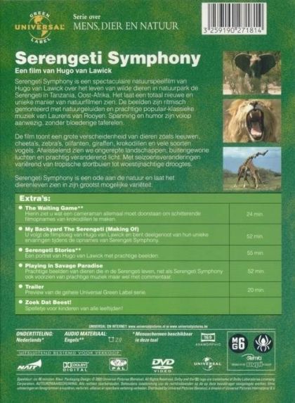 Serengeti Symphony is een spectaculaire natuurspeelfilm van Hugo van Lawick over het leven van wilde dieren in natuurpark de Serengeti in Tanzania, Oost-Afrika. Het laat een totaal nieuwe en unieke manier van natuurfilmen zien. De beelden zijn ritmisch gemonteerd met natuurgeluiden en prachtige populair-klassieke muziek van Laurens van Rooyen. Spanning en humor zijn volop aanwezig zonder bloederige taferelen.De film toont een grote verscheideneid van dieren zoals leeuwen, cheeta's, zebra's, olifanten, giraffen, krokodillen en vele soorten vogels. Afwisselend zien we ongerepte landschappen, buitengewone luchten en prachtig vernaderend licht. Met seizoensveranderingen variërend van tropische stortbuien tot woestijnachtige droogtes.Serengeti Symphony is een ode aan de natuur en laat het dierenleven zien in zijn grootst mogelijke variëteit.