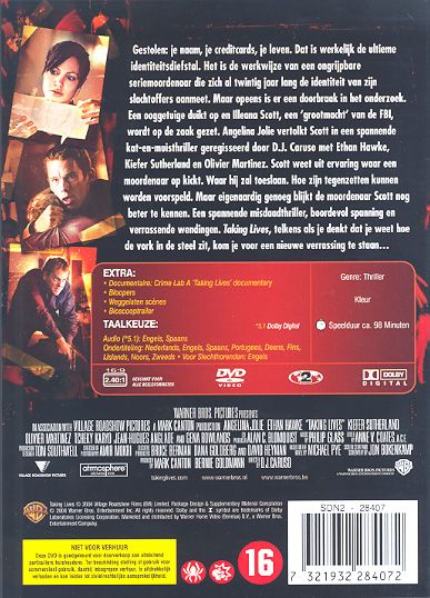 Gestolen: je naam, je creditcards, je leven. Dat is werkelijk de ultieme identiteitsdiefstal. Het is de werkwijze van een ongrijpbare seriemoordenaar die zich al twintig jaar lang de identiteit van zijn slachtoffers aanmeet. Maar opeens is er een doorbraak in het onderzoek. Een getuige duikt op en Illeana Scott, een 'grootmacht' van de FBI, wordt op de zaak gezet. Scott weet uit ervaring waar een moordenaar op kickt. Waar hij zal toeslaan. Hoe zijn tegenzetten kunnen worden voorspeld. Maar eigenaardig genoeg blijkt de moordenaar Scott nog beter te kennen. Een spannende misdaadthriller, boordevol spanning en verassende wendingen. Taking Lives, telkens als je denkt dat je weet hoe de vork in de steel zit, kom je voor een nieuwe verassing te staan...