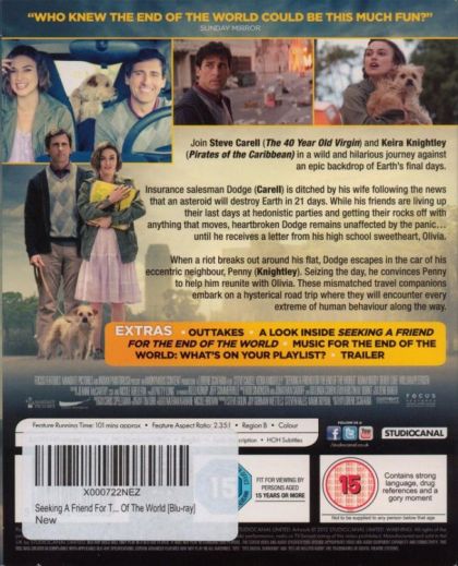 Join Steve Carell (The 40 Year Old Virgin) and Keira Knightley (Pirates of the Caribbean) in a wild and hilarious journey against an epic backdrop of Earth's final days.Insurance salesman Dodge (Carell) is ditched by his wife following the news that an asteroid will destroy Earth in 21 days. While his friends are living up their last days at hedonistic parties and getting their rocks off with anything that moves, heartbroken Dodge remains unaffected by the panic... until he receives a letter from his high school sweetheart, Olivia.When a riot breaks out around his flat, Dodge escapes in the car of his eccentric neighbour, Penny (Knightley). Seizing the day, he convinces Penny to help him reunite with Olivia. These mismatched travel companions embark on a hysterical road trip where they will encounter every extreme of human behaviour along the way.
