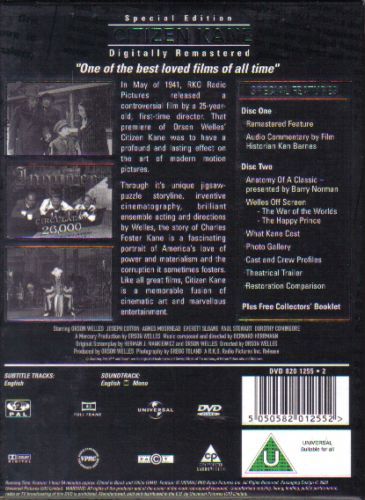 In May of 1941, RKO Radio Pictures released a controversial film by a 25-year-old, first-time director. That premier of Orson Welles' Citizen Kane was to have a profound and lasting effect of the art of motion pictures.Through its unique jigsaw-puzzle storyline, inventive cinematography, brilliant ensemble acting, and direction by Welles, the story of Charles Foster Kane is a fascinating portrait of America's love of power and materialism, and the corruption it sometimes fosters. Like all great films, Citizen Kane is a memorable fusion of cinematic art and marvellous entertainment.