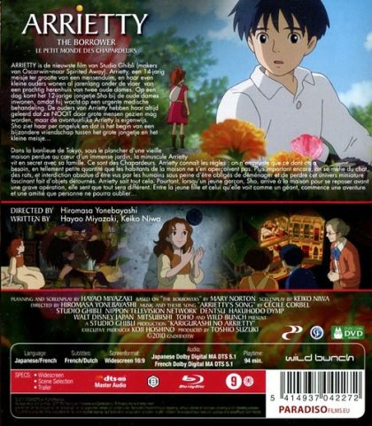 ARRIETTY, de nieuwste film van Studio Ghibli (makers van Oscarwinnaar Spirited Away). Arrietty, een 14-jarig meisje ter grootte van een mensenduim, en haar even kleine ouders wonen al jarenlang onder de vloer van een prachtig herenhuis van twee oude dames. Op een dag komt het 12-jarige jongetje Sho bij de oude dames inwonen, omdat hij wacht op een urgente medische behandeling. De ouders van Arrietty hebben haar altijd geleerd dat ze NOOIT door grote mensen gezien mag worden, maar de avontuurlijke Arrietty is eigenwijs. Sho ziet haar per ongeluk dat is het begin van een bijzondere vriendschap tussen het grote jongetje en het kleine meisje…