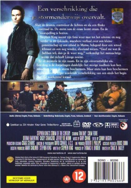 Sluit de deuren, controleer de lichten en sla een flinke voorraad in. De storm van de eeuw komt eraan. En de voorspelling is horror.Stephen King neemt zijn fans weer mee tot het uiterste en nog verder in dit ijskoude, macabere verhaal over een kleine gemeenschap op een eiland in Maine, belegerd door een wreed klimaat en een nog wreder, alwetend wezen. "Geef me wat ik hebben wil, dan ga ik weer weg." verkondigd het mensachtig wezen dat zichzelf Linoge noemt.Er zit mysterie in zijn naam. En in zijn overzettelijke eis. Een ding is de dorpelingen duidelijk: het stevige raadhuis kan hen misschien tegen de storm beschermen. Maar niets kan hen beschermen tegen de steeds erger wordende verschrikkinge van een sinds het begin der tijd woekerend kwaad.