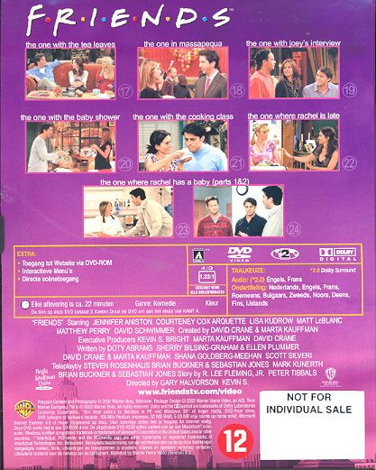 The One With The Tea Leaves:Joey is nog steeds niet over zijn schaamte heen nadat hij door Rachel is afgewezen. Zodra hij en Rachel in een kamer zijn valt er een doodse stilte. Monica komt met een tip maar dat loopt vreselijk uit de hand. Ondertussen probeert Phoebe voor iedereen de toekomst te voorspellen door middel van thee bladeren. Ze ziet voor zichzelf dat de man van haar dromen zeer nabij is, ze ontmoet dan ook een jongen maar die is slechts geïnteresseerd in een... ehh twee punten van Phoebe.The One In Massapequa:De ouders van Ross en Monica zijn 35 jaar getrouwd en vieren feest. Normaal houdt Ross altijd een zeer emotionele speech zodat iedereen aan het huilen slaat. Monica is hier natuurlijk zeer jaloers over en wil dit jaar de speech houden en bereidt zich voor door allerlei zielige dingen te bedenken zodat iedereen zal huilen, maar speechen is niet de sterke kant van Monica. Phoebe heeft in de stomerij een nieuwe vriend ontmoet (Alec Baldwin) en vraagt of hij ook mee mag naar het feest. Dat ze daarin hebben ingestemd bezuren ze later want deze nieuwe vriend is hyper-hyperactief en positief.The One With Joey's Interviews:Joey's naam wordt gebruikt in een kruiswoordpuzzel van een Soap-magazine. Hij is er heel trots op en vertelt dat het blad een interview met Joey wil houden maar dat schuift hij steeds van zich af omdat hij tijdens een vorig interview zijn rol verloor omdat hij zeer domme dingen had gezegd. De vrienden besluiten Joey te helpen en zullen dichtbij hem zitten als hij geïnterviewd wordt en zullen ingrijpen als hij de mist in dreigt te gaan.The One With The Baby Shower:Monica en Phoebe organiseren een baby shower voor Rachel, maar zijn totaal vergeten om Monica's moeder uit te nodigen. Die komt uiteindelijk wel maar blijft het Monica inwrijven, die probeert op haar beurt weer om er alles aan te doen om maar in een goed blaadje te komen van Monica's ma. Rachel heeft ondertussen twijfels of ze wel een goede moeder zal worden en krijgt koude voeten, haar moeder heeft een goed idee; ze komt gewoon 8 weken bij Ross en Rachel inwonen. Maar of Ross daar blij mee is. Ondertussen is Joey druk bezig, hij gaat auditie doen als gamehost van een zeer ingewikkeld spel: Bamboozled.The One With The Cooking Class:Het restaurant van Monica heeft een zeer slechte recensie in de krant gekregen, ze laat het hier niet bij zitten en maakt een bouillon om daarna de goede man te bezoeken en het hem te laten proeven. De man in kwestie geeft kooklessen en Monica en Joey zoeken hem op. Maar ook deze bouillon kan de goede man niet bekoren en dan belanden Monica en Joey plotseling in een kookles en Monica besluit haar beste beentje voor te zetten om zo toch de eer te krijgen die ze denkt te verdienen. Ondertussen heeft Ross sjans van een meisje dat hij heeft leren kennen toen Rachel en hij babyspulletjes gingen kopen. Dit meisje nodigt Ross uit voor een date maar Rachel is jaloers.The One Where Rachel Is LateOnze vrienden worden helemaal gestoord van Rachel, ze is over tijd en dat komt niet ten goede van haar humeur. Ross schijnt helemaal niks goed te kunnen doen en Rachel brengt hem regelmatig tot wanhoop. Ondertussen hebben Phoebe en Monica een weddenschap afgesloten wanneer de baby zal komen. Joey wordt uitgenodigd voor de première van zijn laatste bioscoopfilm, hij mag slechts maar een gast meenemen. Dit wordt Chandler, omdat hij Joey steeds gesteund heeft. Maar dat Chandler in de bioscoop in slaap valt neemt Joey hem niet in dank af.The One Where Rachel Has A Baby (Part I):Eindelijk komt de baby... Tenminste... Als Rachel meer ontsluiting heeft. Ze ligt tegen haar zin in op een 2 persoonskamer en ziet zwangere vrouwen komen en gaan terwijl haar baby maar niet komt. Ondertussen hebben Monica en Chandler ook de beslissing genomen om aan een kind te beginnen en wel onmiddellijk! Ze zoeken snel een leegstaande kamer met bed op, maar dat blijkt moeilijker dan verwacht. Phoebe heeft ondertussen de man van haar dromen gevonden in het ziekenhuis maar durft hem niet te benaderen.The One Where Rachel Has A Baby (Part II):Rachel krijgt de schrik van haar leven als een hoogzwangere Janice de zaal op komt rijden. Eindelijk bevalt Rachel van haar kindje, het blijkt een meisje te zijn. Het verzinnen van een naam is nog heel moeilijk maar Monica draagt uiteindelijk een mooie naam aan. Phoebe vraagt Joey om als dokter te spelen om op die manier meer over "haar" vriend te weten te komen omdat ze de laatste tijd nogal haar hoofd heeft gestoten wat mannen betreft. Door een misverstand denkt Rachel dat Joey haar ten huwelijk vraagt, terwijl Ross ook met een bos bloemen naar haar op weg is. Hoe zal dat aflopen?