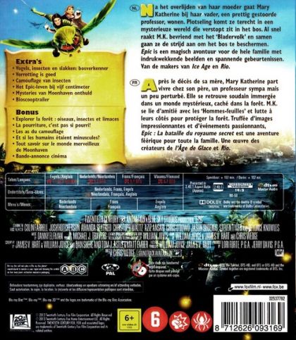 Na het overlijden van haar moeder gaat Mary Katherine bij haar vader, een prettig gestoorde professor, wonen. Plotseling komt ze terecht in een mysterieuze wereld die verstopt zit in het bos. Al snel raakt M.K. bevriend met de ‘Bladervolk’ en samen gaan ze de strijd aan om het bos te beschermen. Epic is een magisch avontuur voor de hele familie met indrukwekkende beelden en spannende gebeurtenissen. Van de makers van Ice Age en Rio.