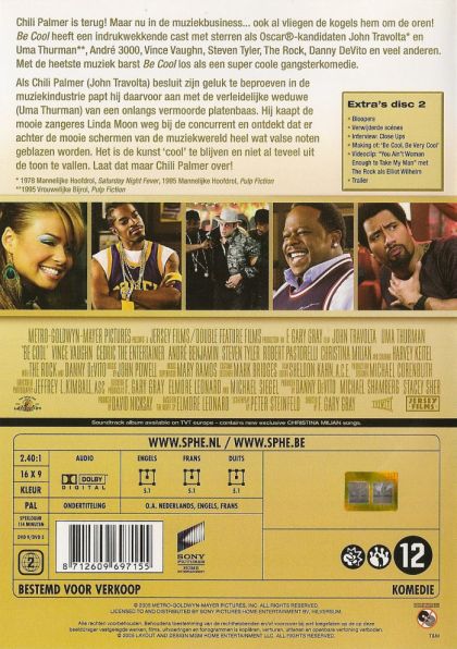 Chili Palmer is terug! Maar nu in de muziekbusiness... ook al vliegen de kogels hem om de oren! Be Cool heeft een indrukwekkende cast met sterren als Oscar®-kandidaten John Travolta* en Uma Thurman**, André 3000, Vince Vaughn, Steven Tyler, The Rock, Danny DeVito en veel anderen. Met de heetste muziek barst Be Cool los als een super coole gangsterkomedie.Als Chili Palmer (John Travolta) besluit zijn geluk te beproeven in de muziekindustrie papt hij daarvoor aan met de verleidelijke weduwe (Uma Thurman) van een onlangs vermoordde platenbaas. Hij kaapte de mooie zangeres Linda Moon weg bij de concurrent en ontdekt dat er achter de mooie schermen van de muziekwereld heel wat valse noten geblazen worden. Het is de kunst 'cool' te blijven en niet al teveel uit de toon te vallen. Laat dat maar aan Chili Palmer over!* 1978 Mannelijke Hoofdrol, Saturday Night Fever, 1995 Mannelijke Hoofdrol, Pulp Fiction**1995 Vrouwelijke Bijrol, Pulp Fiction