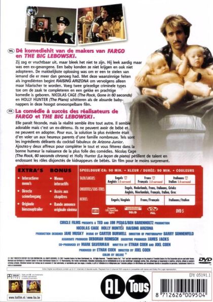 Zij zag er vruchtbaar uit, maar bleek het niet te zijn. Hij leek aardig maar was een ex-gevangene. Een baby konden ze niet krijgen en ook niet adopteren. De makkelijkste oplossing was om er een te stelen van iemand die er meer dan genoeg had. Met deze waanzinnige feiten als ingrediënten begint RAISING ARIZONA om vervolgens alleen maar hilarischer te worden. Voeg twee griezelige criminele types toe om de zaak te completeren en een gekke en prachtige komedie is geboren. NICOLAS CAGE (The Rock, Gone in 60 seconds) en HOLLY HUNTER (The Piano) schitteren als de absurde baby-nappers in deze hoogst onvoorspelbare film.