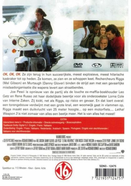 OK, OK, OK. Ze zijn terug in hun succesrijkste, meest explosieve, meest hilarische kaskraker tot op heden. Ze komen, ze zien en ze schoppen keet. Rechercheurs Riggs (Mel Gibson) en Murtaugh (Danny Glover) binden de strijd aan met een gevaarlijke misdaadorganisatie die wapens levert aan straatbendes. Joe Pesci is opnieuw van de partij als de louche ex-maffia-boekhouder Leo Getz en Rene Russo zet haar dodelijkste beentje voor als onderzoekster Lorna Cole van Interne Zaken. Zij Kickt, net als Riggs, op risico en gevaar. En dat loert overal: een torengebouw verdwijnt met een grote knal, een woonwijk gaat in vlammen op, Riggs maakt een duikvlucht van 25 meter hoogte... op een motorfiets .... 'Lethal Weapon 3' is niet zomaar van alles een beetje meer. Het is van alles het meest!