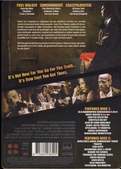Nadat een drugsdeal is uitgelopen op een bloedbad waarbij een corrupte smeris is neergeschoten, krijgt gangster Joey (Paul Walker) opdracht het gebruikte vuurwapen te laten verdwijnen. Het simpele klusje verandert in een nachtmerrie wanneer de buurjongen van Joey het pistool steelt en zijn agressieve stiefvader neerschiet. Voordat zijn maffiabazen er achter komen dat het pistool zoek is, moet Joey zijn buurjongen en het pistool terugvinden voordat de politie het in handen krijgt... Een race tegen de klok begint...Met het spannende Running Scared levert regisseur Wayne Kramer zijn tweede speelfilm af na The Cooler, die genomineerd werd voor twee Golden Globes en een Oscar®.