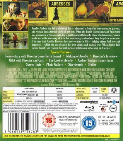 Amelie Poulain has led a sheltered life – educated at home by over-protective parents, she retreats into a fantasy world of her own. When she finally leaves home and finds work as a waitress in a Parisian café, life is pretty uneventful until a chain of extraordinary events leads her to the discovery of a tin box containing a schoolboy's long forgotten mementos. It is then that Amelie discovers her true vocation in life – helping others find love and happiness – which she sets about in her own unique and magical way. When Amelie falls in love herself, she realises that making neat solutions is not as easy as it seems. . .