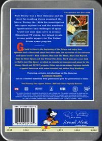 Walt Disney was a true visionary, and his most far-reaching vision examined the future. During the 1950s, his investigation into space exploration and the wondrous opportunities and challenges of space travel not only came alive in several Disneyland TV shows, but helped create strong public support for The United States space program. Go back in time to the beginning of the future and enjoy four episodes and a theatrical short that delve into the mysteries of the universe and space travel – Man In Space, Man And The Moon, Mars And Beyond, Eyes In Outer Space, and Our Friend The Atom. You'll also get a rare look at Walt's last film, "EPCOT," in which he reveals his concepts and plans for the Disney World and EPCOT projects. Other not-to-be-missed features include a special interview with noted futurist and author Ray Bradbury. Featuring exclusive introductions by film historian Leonard Maltin, this is a timeless collection from generations past for generations to come.Featuring exclusive introductions by film historian LEONARD MALTIN, this is a timeless collection from generations past for generations to come.Includes: Man in Space (Ward Kimball, 1955-TV)Man and the Moon (Ward Kimball, 1955-TV)Mars and Beyond (Ward Kimball, 1957-TV)Eyes in Outer Space (Ward Kimball, 1959)Our Friend the Atom (Hamilton Luske, 1957)EPCOT (No Director Credited, 1967)The Optimistic Futurist (Jeff Kurtti, 2004)Marty Sklar, Walt, and EPCOT (Jeff Kurtti, 2004)