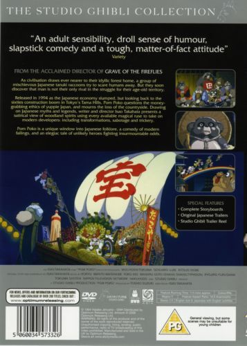 As civilisation draws ever nearer to their idyllic forest home, a group of mischievous Japanese tanuki raccoons try to scare humans away. But they soon discover that man is not their only rival in the struggle for their age-old territory.Released in 1994 as the Japanese economy slumped, but looking back to the sixties construction boom in Tokyo's Tama Hills, Pom Poko questions the money-grabbing ethics of yuppie Japan, and mourns the loss of the countryside. Drawing on Japanese myths and legends, writer and director Isao Takahata presents a satirical view of woodland spirits using every available magical ruse to take on modern developers: including transformations, sabotage and trickery.Pom Poko is a unique window into Japanese folklore, a comedy of modern failings, and an elegiac tale of unlikely heroes fighting insurmountable odds.