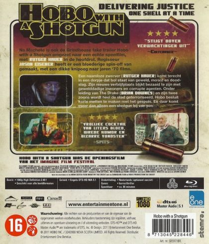 Na Machete is ook de Grindhouse fake trailer Hobo with a Shotgun omgezet naar een echte speelfilm, met RUTGER HAUER in de hoofdrol. Regisseur JASON EISENER heeft er een bloedige spin-off van gemaakt, met een dikke knipoog naar haren '70 films.Een naamloze zwerver (RUTGER HAUER) komt terecht in een dorpje dat bol staat van geweld, moord en doodslag. Zijn nieuwe verblijfplaats blijkt bezaaid te zijn met gewelddadige inwoners en corrupte agenten. Onder leiding van The Drake (BRIAN DOWNEY) en zijn twee zoons wordt heel de stad geterroriseerd. Hobo besluit korte metten te maken met het gespuis. En daar komt meer dan alleen een shotgun bij van pas…