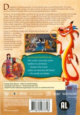 De legende van Mulan gaat door in een compleet nieuwe avondvullende film. De mooie, dappere heldin is terug in het spectaculaire vervolg op de originele Disneyklassieker, samen met haar komische draakje Mushu en een paar geweldige nieuwe vrienden.Het leven van de pittige Mulan verandert op slag wanneer de legeraanvoerder Shang haar ten huwelijk vraagt. Maar dit is pas het begin! De ondeugende Mushu wil hun trouwplannen dwarsbomen en probeert het gelukkige paar zolang mogelijk uit elkaar te houden. Mushu vreest namelijk dat hij zijn baan als oppasser van Mulan kwijt raakt zodra zij in het huwelijk treedt. Daarbij komt nog dat Mulan en Shang drie uitgehuwelijkte prinsessen op een reis dwars door China moeten begeleiden. Als Mulan ontdekt dat de prinsessen helemaal niet willen trouwen, neemt ze een moedige beslissing die de loop van de geschiedenis zal veranderen.Laat je in vervoering brengen door de spanning en humor van Mulan 2 - een nieuwe klassieker in Disney's rijke animatietraditie. De film trakteert je op onweerstaanbare nieuwe muziek, heerlijke comedy, en een hartverwarmend verhaal over moed en vriendschap.