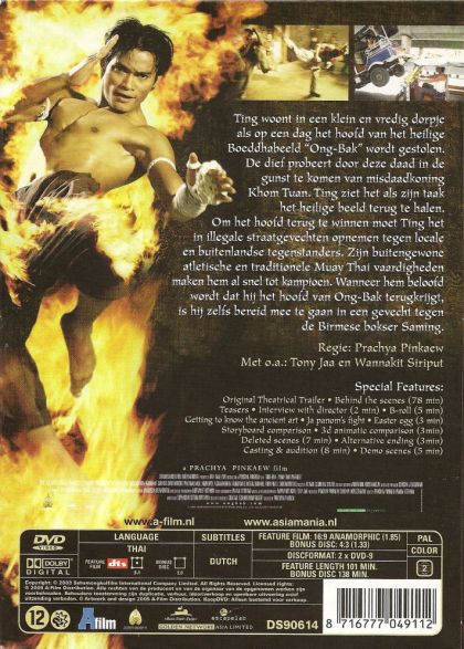 Ting woont in een klein en vredig dorpje als op een dag het hoofd van het heilige Boeddhabeeld "Ong-Bak" wordt gestolen. De dief probeert door deze daad in de gunst te komen van misdaadkoning Khom Tuan. Ting ziet het als zijn taak het heilige beeld terug te halen.Om het hoofd terug te winnen moet Ting het in illegale straatgevechten opnemen tegen locale en buitenlandse tegenstanders. Zijn buitengewone atletische en traditionele Muay Thai vaardigheden maken hem al snel tot kampioen. Wanneer hem beloofd wordt dat hij het hoofd van Ong-Bak terugkrijgt, is hij zelfs bereid mee te gaan in een gevecht tegen de Birmese bokser Saming.
